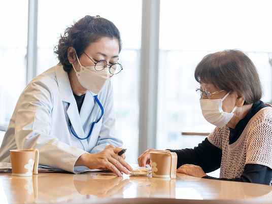 医療では同一法人のかわな病院、覚王山内科・在宅クリニックの医師が、かかりつけ医として定期的な訪問診療や往診で支え、日々の健康管理を専従の看護・介護職員で支えます。