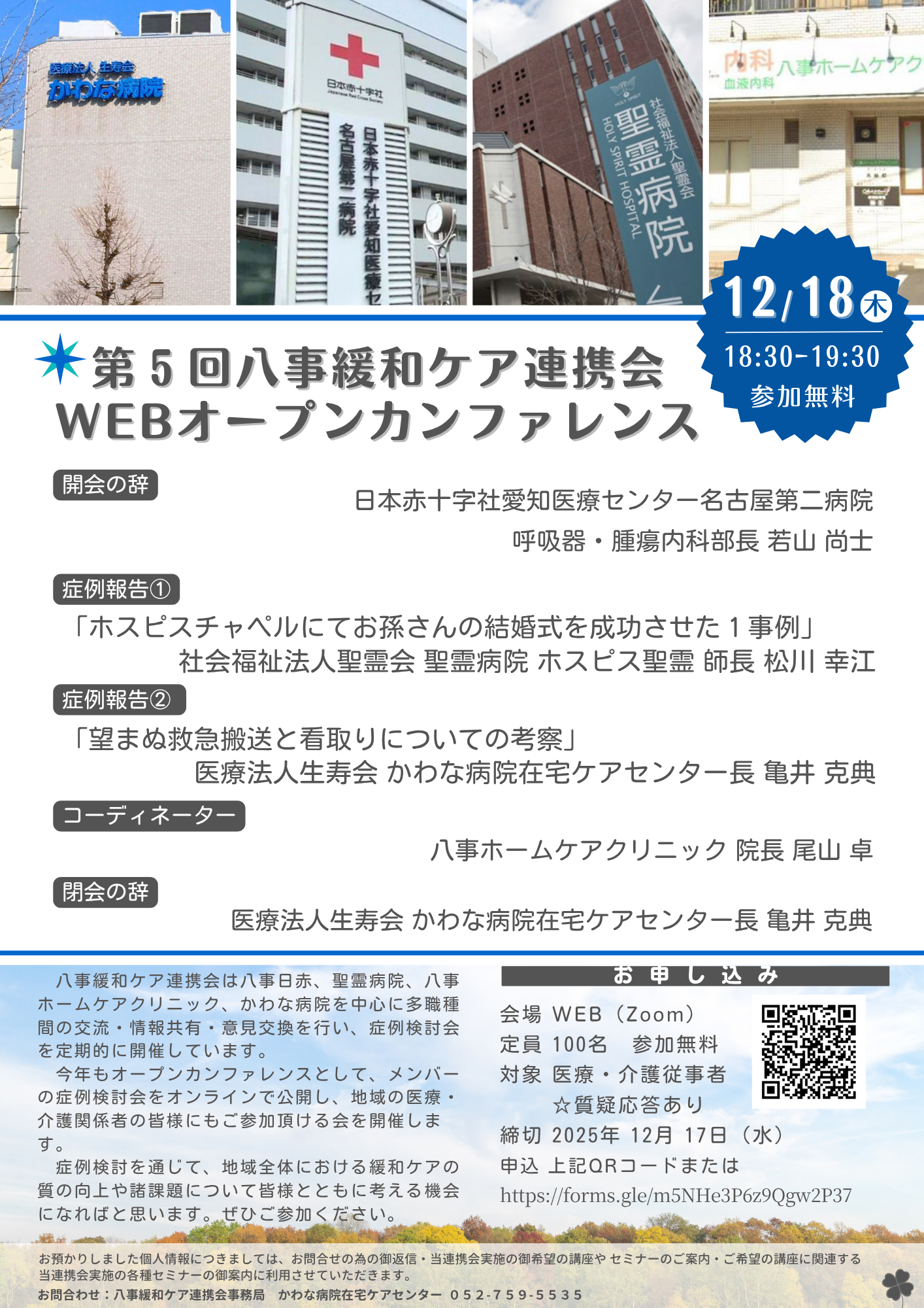【かわな病院】WEBセミナー:第5回 八事緩和ケア連携会WEBオープンカンファレンス 2025/11/06